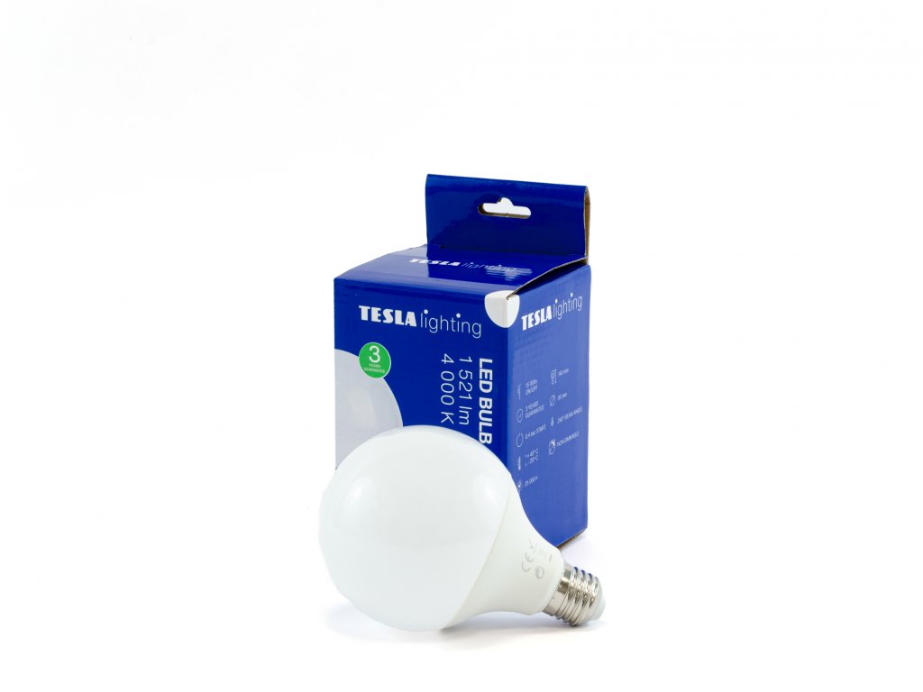 LED žárovka od tradiční české společnosti s více než 100letou historií TESLA lighting. Tato žárovka je určena pro svítidla s paticí E27. Vyzařuje denní bílé světlo s chromatičností 4000K a svítivostí 1521 lm, které je ideální pro pracovní a běžné činnosti, proto lze tuto žárovku doporučit zejména do pracoven, šaten a koupelen. Díky moderní a efektivní LED technologii nahradí s příkonem 15 W klasickou 100W žárovku a ušetří Vám až 85 % nákladů na energii. Jistě také potěší dlouhá životnost až 25 000 hodin a 15 000 spínacích cyklů. Kvalita produktu je podpořena rozšířenou zárukou na 3 roky.
