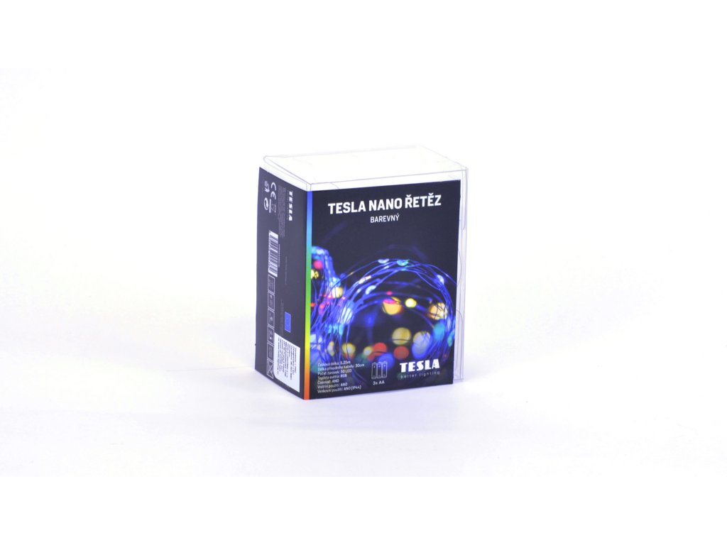 LED dekorativní nano řetěz od společnosti TESLA lighting, 50LED diod, teplota světla 2700K (RGB), délka osvětleného kabelu 5m, délka přívodního kabelu 30cm, vhodné pro vnitřní i venkovní použití - třída ochrany: IP44 (venkovní použití), časovač