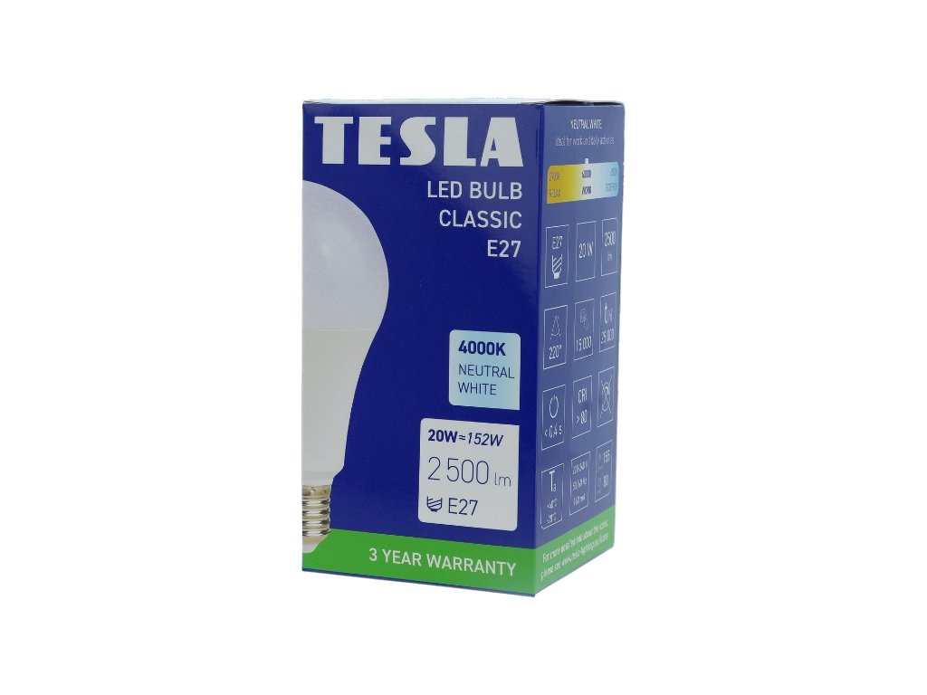 Tesla - LED žárovka BULB E27, 20W, 230V, 2500lm, 25 000h, 4000K denní bílá 220st