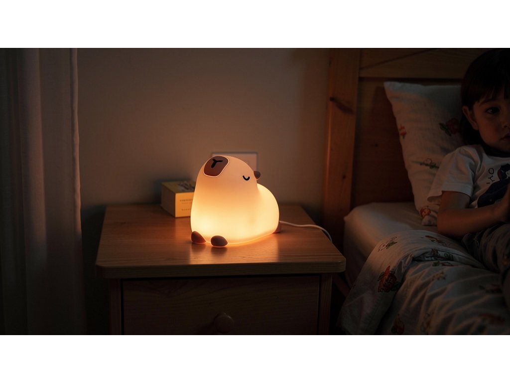 Roztomilá kapybara přinese do dětského pokojíčku klid a pohodu. Je vyrobená z jemného silikonu, příjemného na dotek, a se svým jemným světlem pomůže dětem usnout bez strachu ze tmy. Stačí lehké poklepání a světlo jednoduše ztlumíte nebo zhasnete. Díky chytrému časovači se lampička po 30 minutách sama vypne – baterie tak vydrží déle a vaše dítě mezitím spokojeně usne.